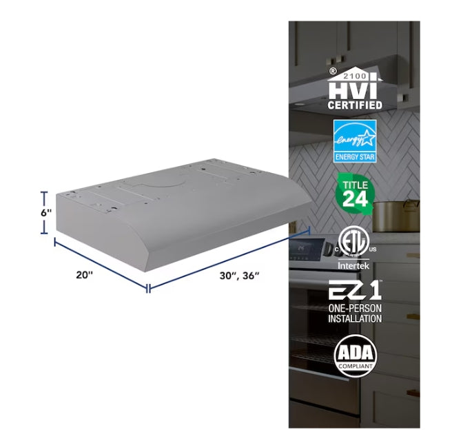 From the leader in residential indoor air quality, this under-cabinet range hood by Broan-NuTone is built to surpass industry standards with over 50 points of inspection, engineered as a reliable ventilation solution. The durable hood vent is up to 20% more effective at removing pollutants than the leading competitor with power ventilation at 350 Max Blower CFM to capture and remove smoke and odors from the kitchen.