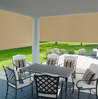 Coolaroo wand operated outdoor roller shades combine a smooth crank mechanism, unique knitted fabric, and classic design. The smooth crank operation features a removable wand that makes it easy to raise and lower shade at any height. Our unique knitted fabric blocks up to 90-percent of damaging UV rays and provides the ideal outdoor shade product for pergolas, decks, and patios. Our weather resistant fabric and components resist fading, ensuring your shades will look great for a long time. Coolaroo outdoor shades provide a fresh, unique, stylish addition to any decor.