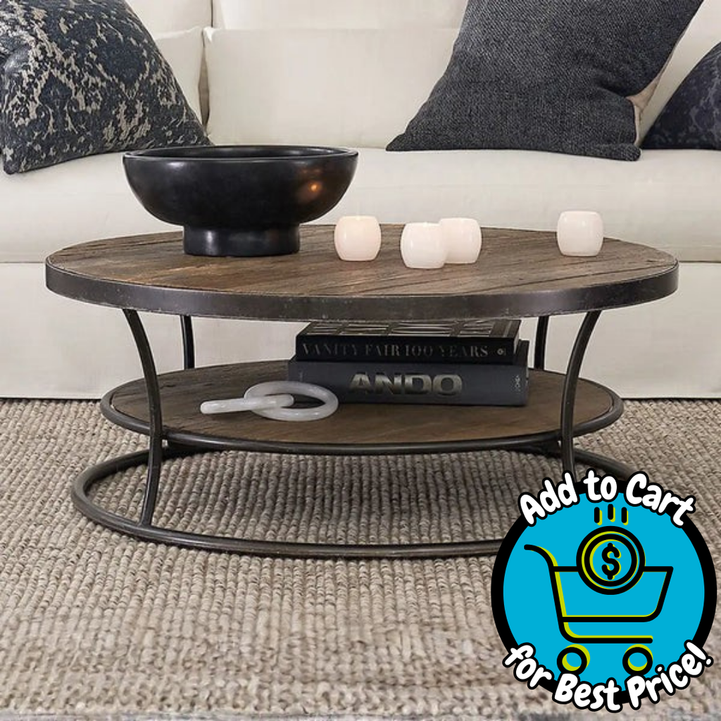 Add warmth and industrial charm to your space with this 42" round coffee table, crafted with a distressed wood top and a matte black metal frame. The two-tier design offers extra storage, perfect for styling with books or décor.