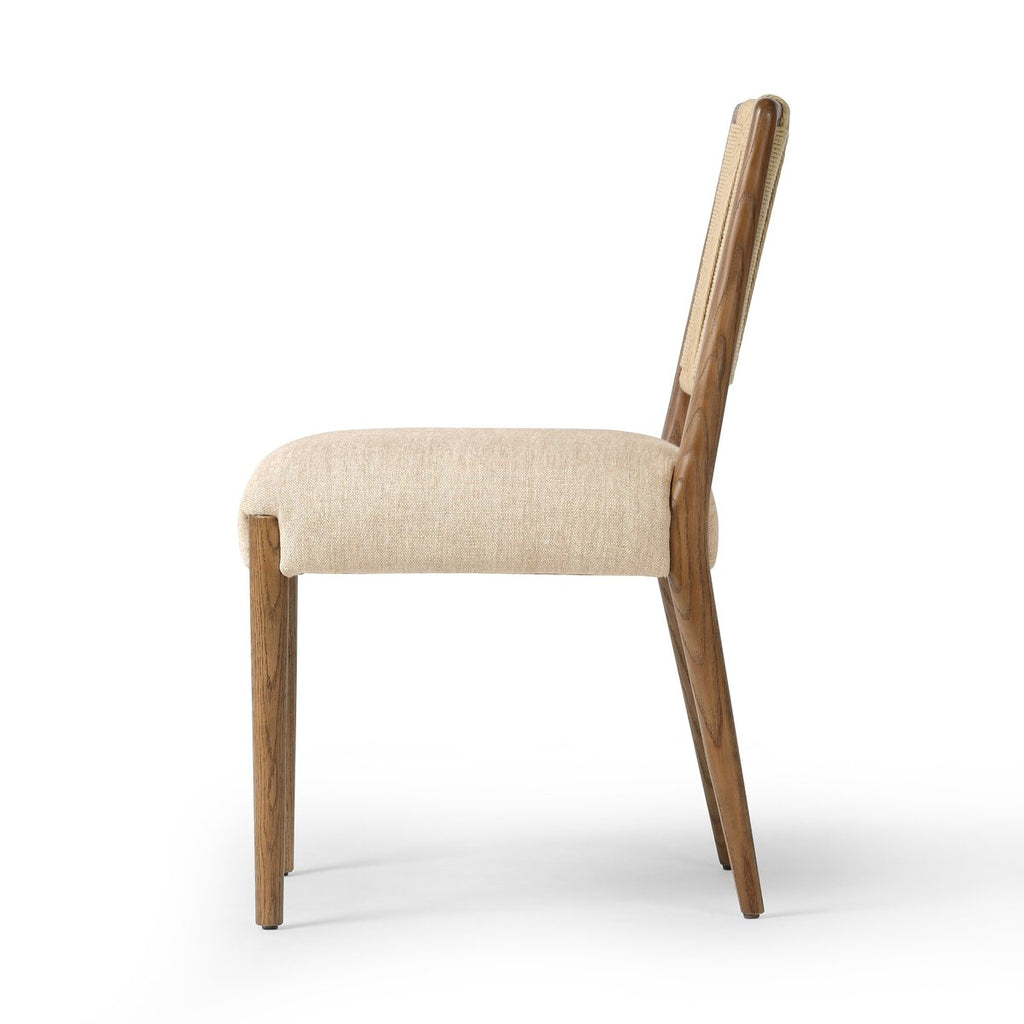 The Four Hands Ira Somerton Ash Chair features refined craftsmanship with its soft ash-colored upholstery, supportive cushioned seat, and sleek black iron frame. Its minimalist design complements modern and transitional interiors beautifully.