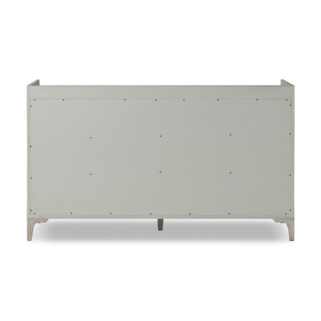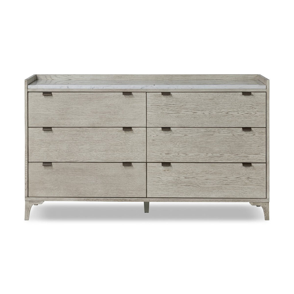 Vintage white oak is finished with a dry hand for a light look, while a top of white Italian marble offers a sophisticated material mix. Six spacious drawers bring generous storage space to the bedroom. This item has been modified to comply with the STURDY Act.