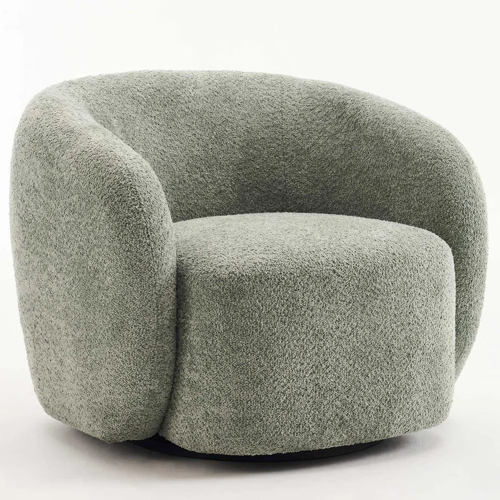 Perfect for children, this cute swivel barrel chair is the best accent piece in kids' rooms, living rooms, bedrooms, and small spaces. This swivel barrel chair is a fully assembled item, just get it and then enjoy it. The soft fluffy boucle fabric of this upholstered swivel armchair with a marriage of fluid lines and embracing curves offers enveloping comfort. You can enjoy a big warm hug from the wraparound back and gently sloping arms of this boucle armchair.