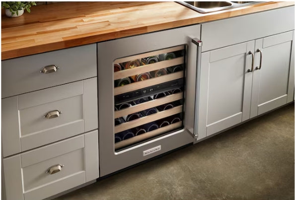 KitchenAid 46 -Bottles Black Cabinet Stainless Doors Dual Zone Cooling Built-in Indoor Wine Cooler