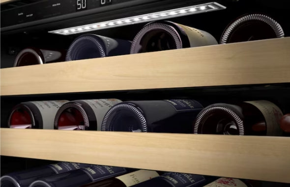 This Under counter Wine Cellar with Full-Extension Metal-Front Racks holds up to 46 standard Bordeaux-size bottles. Two Temperature-Controlled Zones let you separate reds and whites to store each at the temperature you enjoy, and Motion-Activated LED Lighting turns on as you approach, making it easy to see what’s inside.
