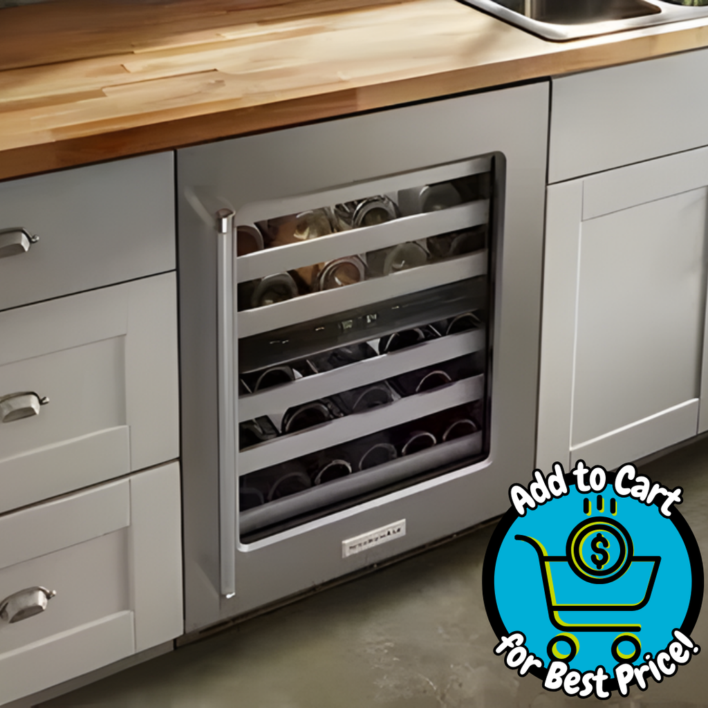 This Under counter Wine Cellar with Full-Extension Metal-Front Racks holds up to 46 standard Bordeaux-size bottles. Two Temperature-Controlled Zones let you separate reds and whites to store each at the temperature you enjoy, and Motion-Activated LED Lighting turns on as you approach, making it easy to see what’s inside.