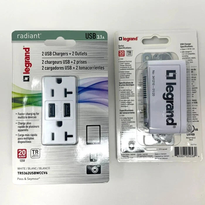 Designed for commercial markets with strength and durability in mind, this combination USB charger duplex receptacle features 3.1A overall USB charging capability and is compatible with USB 2.0 & 3.0 devices. For detailed Tamper-Resistant receptacle information, visit our Tamper-Resistant Receptacles page.