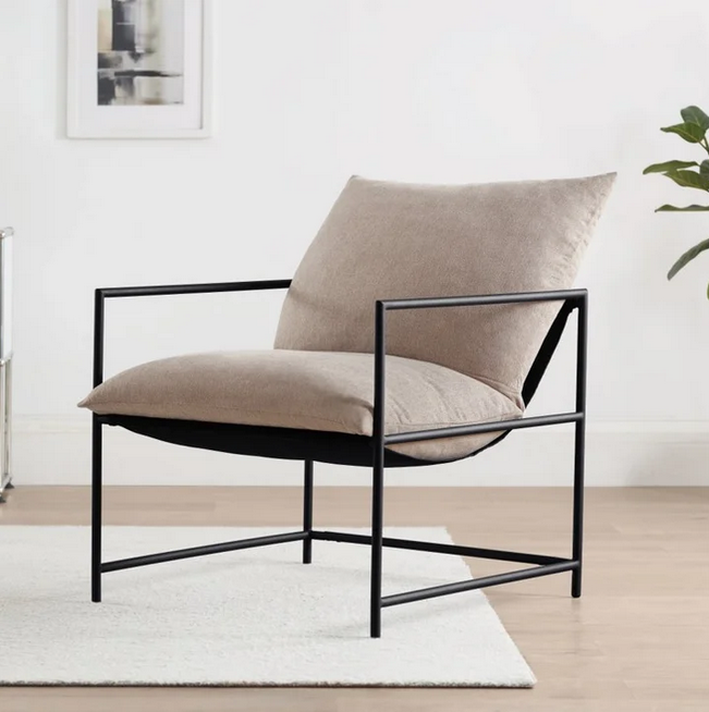 The Mainstays Sling Chair offers a stylish and comfortable way to relax in any room of your home. With its sleek square-shaped steel frame, this modern chair boasts a versatile look that will complement any decor. Plush textured fabric cushion, filled with shredded foam, provide hours of comfortable seating, while the wide seat offers ample space for relaxation. This sturdy chair can support up to 330 pounds, ensuring lasting comfort and support for all users. Its contemporary design and comfortable seating make it a must-have piece for any living space. Get ready to relax in style with the Mainstays Sling Chair!