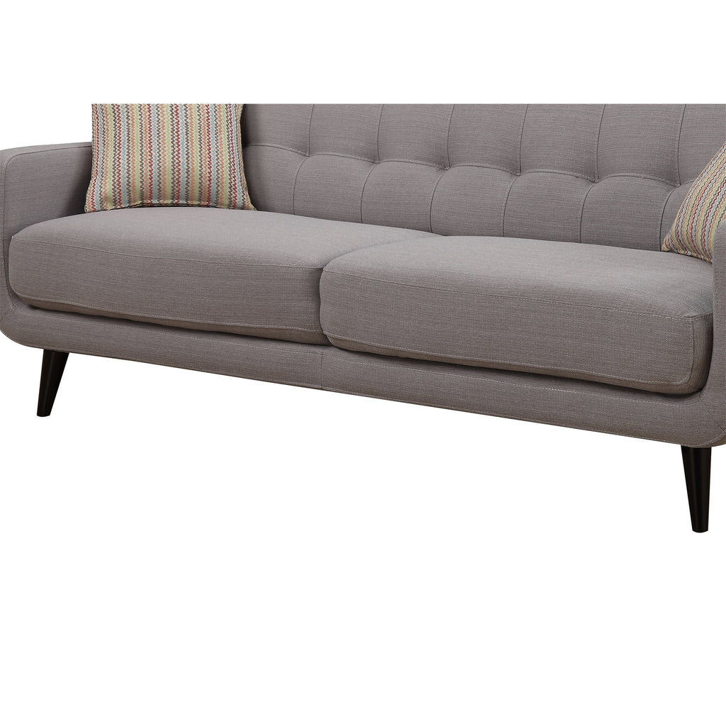 Skillfully crafted with clean lines, beautiful curves, comfortable plush seat cushions, and carefully tufted back cushion, this is a fusion of modern and classic style. Outfitted with solid espresso legs and soft upholstered fabric, our Crystal Collection will be the perfect design piece for your media room, living room, loft, lounge office and or think tanks.