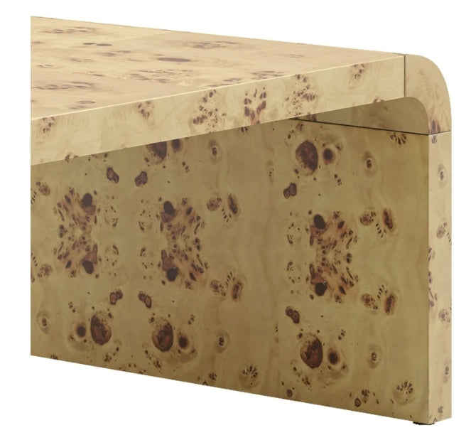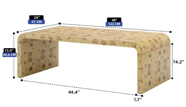 This rectangular table features a sleek burl wood finish with unique grain patterns that add a touch of elegance. Its modern U-shaped design saves space and fits seamlessly with your seating arrangement. Built from solid and manufactured wood, it supports up to 200 lbs, making it perfect for hosting gatherings, displaying decor, or enjoying coffee breaks.