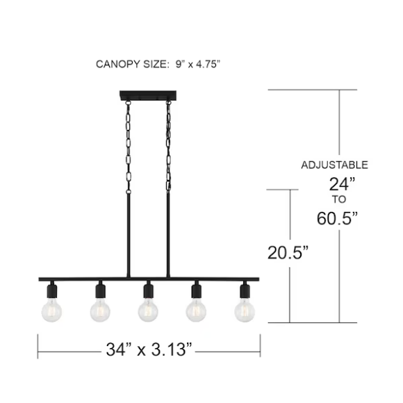 Provide a soothing glow for your space with this modern farmhouse-inspired 5-light linear chandelier. This gorgeous fixture has a minimalist open frame with exposed bulbs (not included) that provide an airy, ambient light. Shop the rest of the Pendle Brooke collection for additional color ways and similarly designed pieces.
