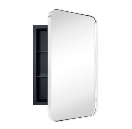 This stainless steel framed medicine cabinet is designed for recessed mounting. Modern and contemporary styled to complement a variety of bathroom decor, this bathroom mirror with cabinet provides lots of space-enchanting reflections with a rounded rectangle of mirrored glass. Choose us and bring your home to appear brighter.