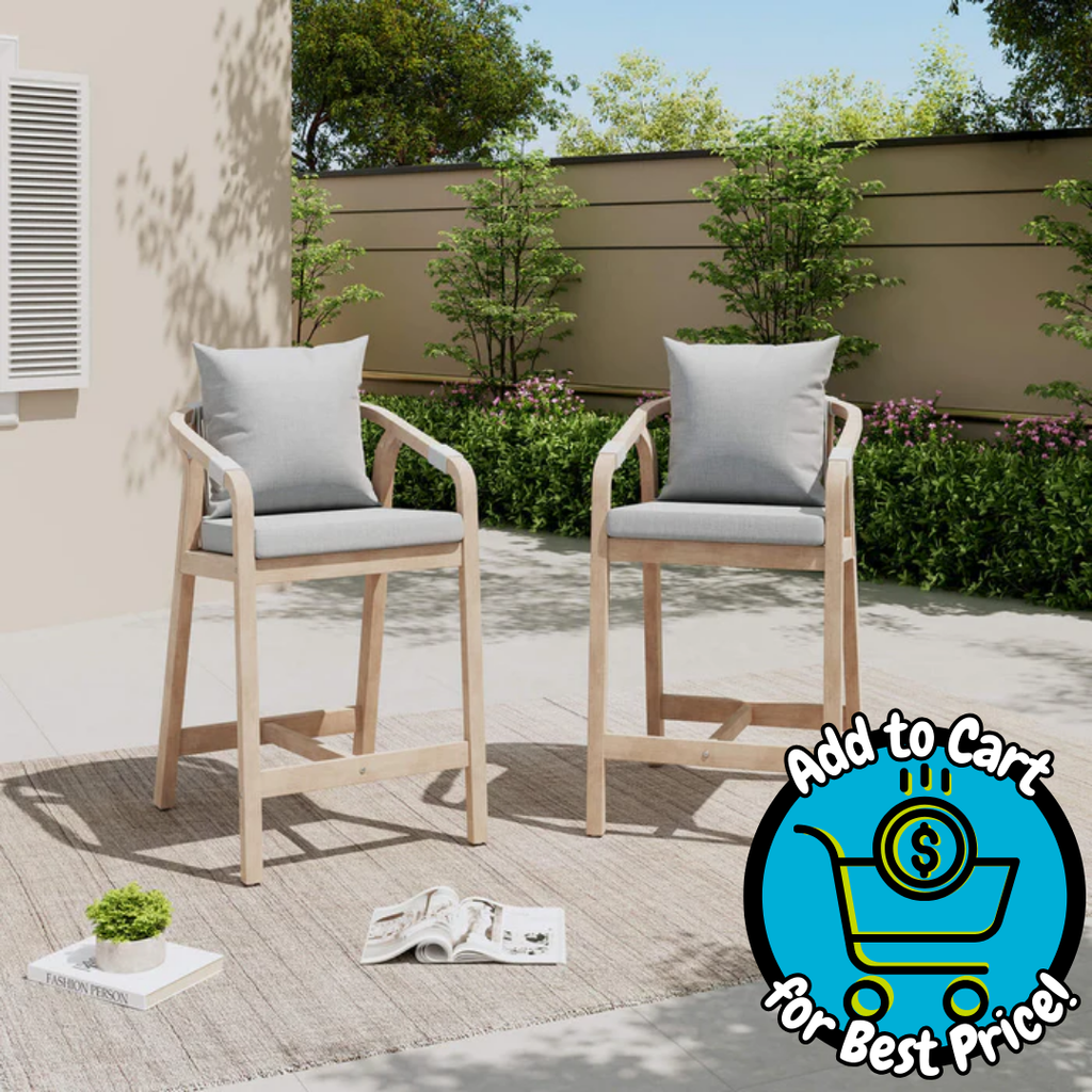 Thalea Wood Outdoor Bar Stool With Cushions, Set of 2