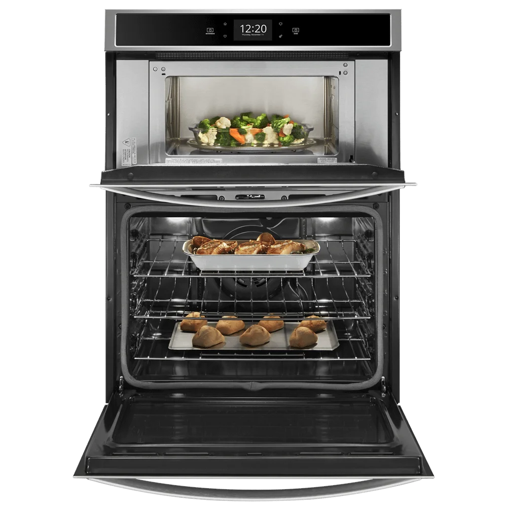 This smart combination wall oven with true convection from Whirlpool offers versatile function in order to make your cooking experience hassle-free. Care smarter with connected features that let you send cooking instructions to the oven from your smartphone, control your kitchen with voice commands through a smart home assistant or skip preheating. With Scan-to-Cook Technology, scan a frozen food barcode with your smartphone or tablet and send recommended or customized cooking instructions straight to your oven for dinner done the way your family wants it.