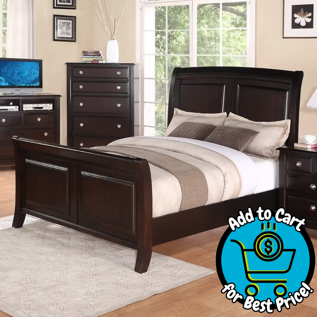 This transitional King bed in a rich cappuccino finish brings warmth to your bedroom while creating an inviting atmosphere. Crafted from sturdy materials, it offers lasting durability and a sleek silhouette that complements a range of decor styles throughout your home. The graceful curves and clean lines enhance its appeal, making it a focal point in your sleeping space.