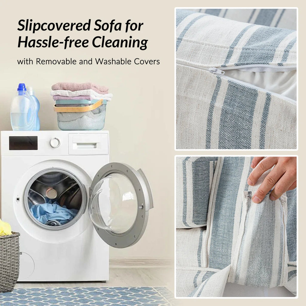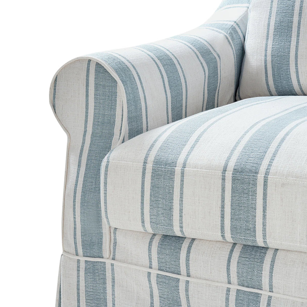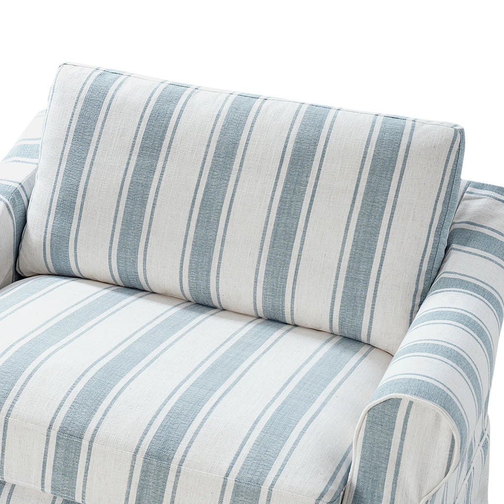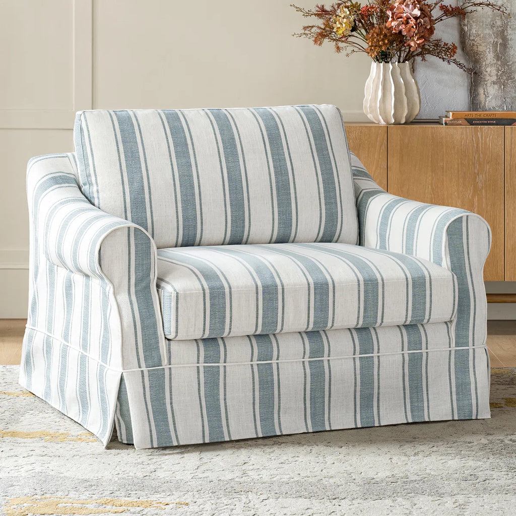 This chair and a half combines spacious comfort with timeless style, making it the perfect spot to unwind. Its oversized design provides ample room for lounging, curling up with a good book, or relaxing with a loved one or pet. The seat and back cushions are generously filled with feathers, creating a plush, sink-in feel that enhances their inviting comfort. Wrapped in a removable slipcover, the chair is easy to clean and maintain, allowing you to keep it looking fresh while offering the flexibility to change its style over time.