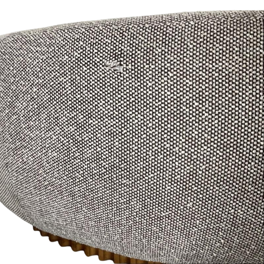 This plush, overstuffed sofa offers an inviting place to land. Set on a rippled wooden plinth base, the bouclé upholstery and contoured silhouette anchor the space with sculptural warmth, styling a statement sofa made for comfort. This piece is from our exclusive Sarah Sherman Samuel collaboration and features all the trademarks of her warm, edited style.
