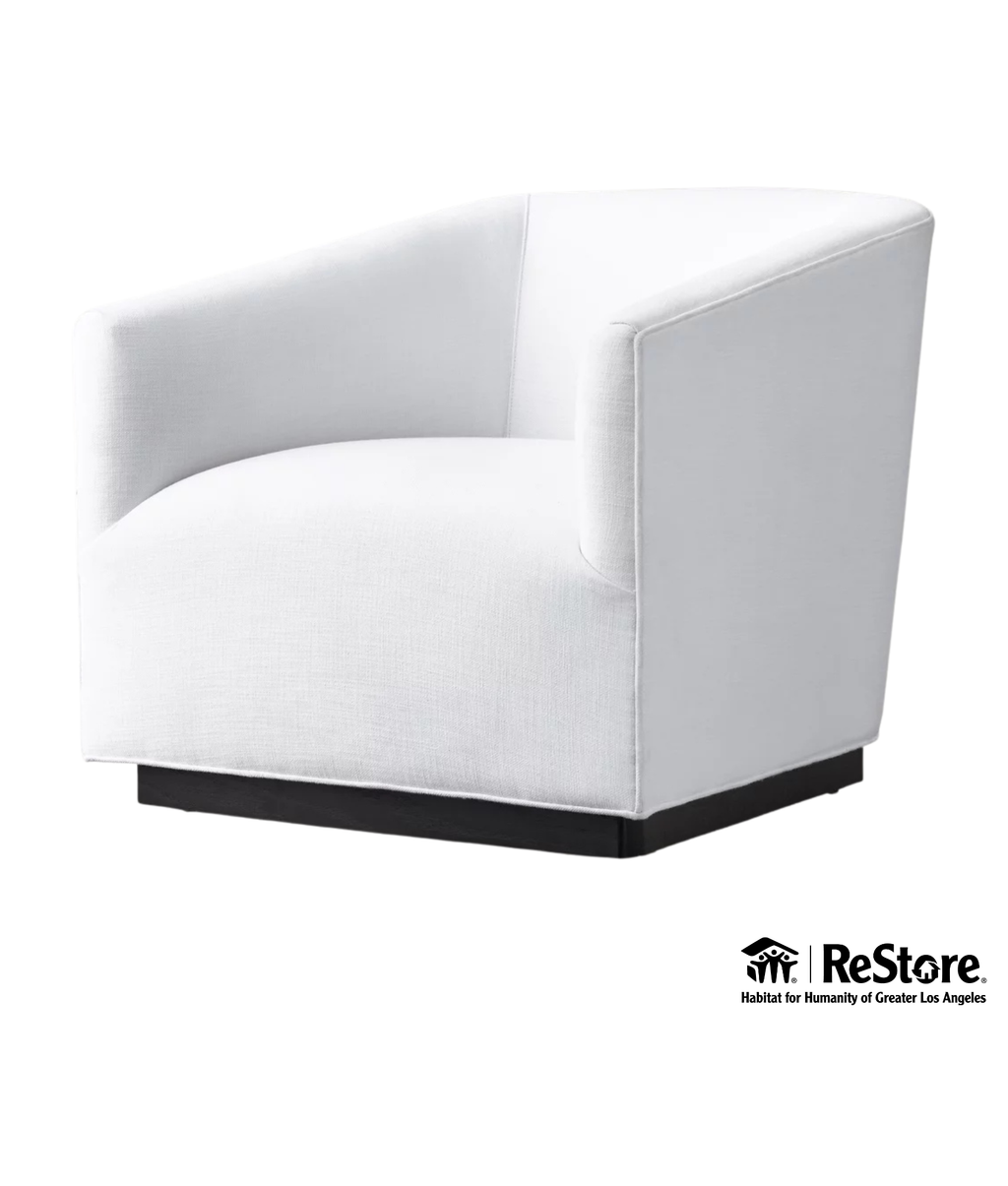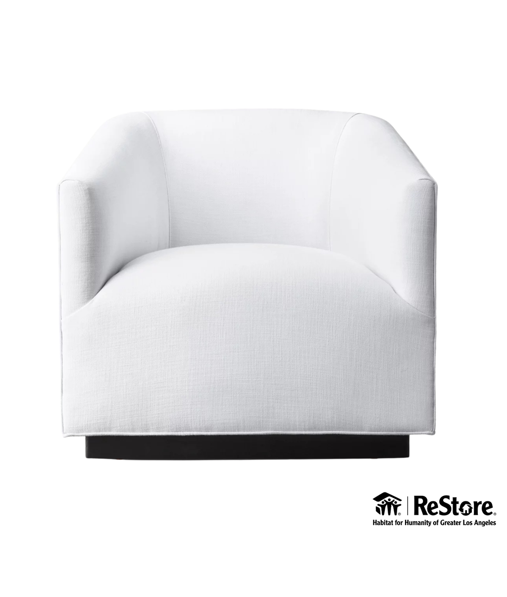 Hand assembled by master craftsmen in Hickory, North Carolina. The 1950s Italian Shelter collection is streamlined with curved, shelter-style arms and a waterfall seat cushion. This elegant arm chair recalls the sculptural forms of midcentury Italian design.