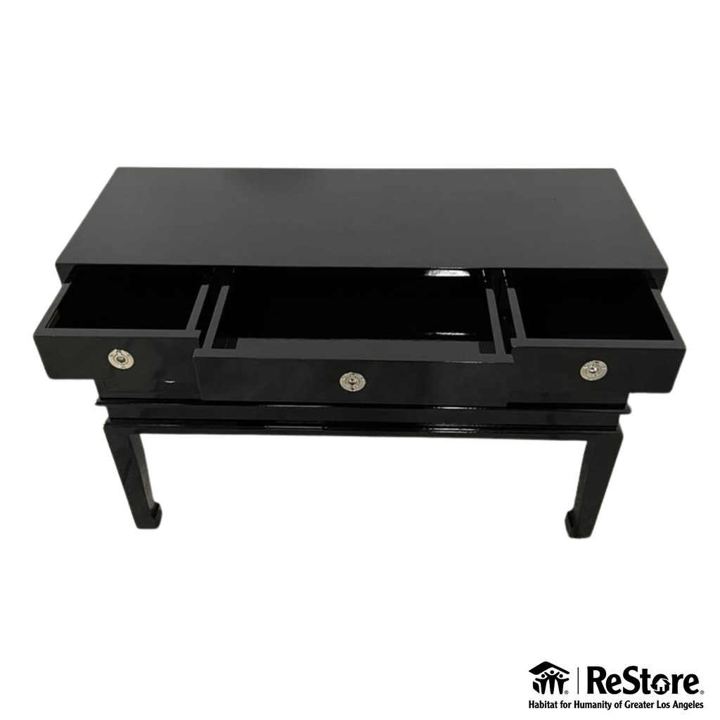 This stunning Lawson-Fenning console table embodies timeless craftsmanship and modern sophistication. Finished in a rich black lacquer with a lustrous sheen, the piece features nine drawers adorned with elegant circular silver hardware for a refined, tailored look. Its clean lines and sculptural base reflect Lawson-Fenning’s signature blend of California modernism and vintage-inspired design. Perfect as an entryway statement, dining room sideboard, or living room accent, this versatile console adds both functionality and understated luxury to any interior.