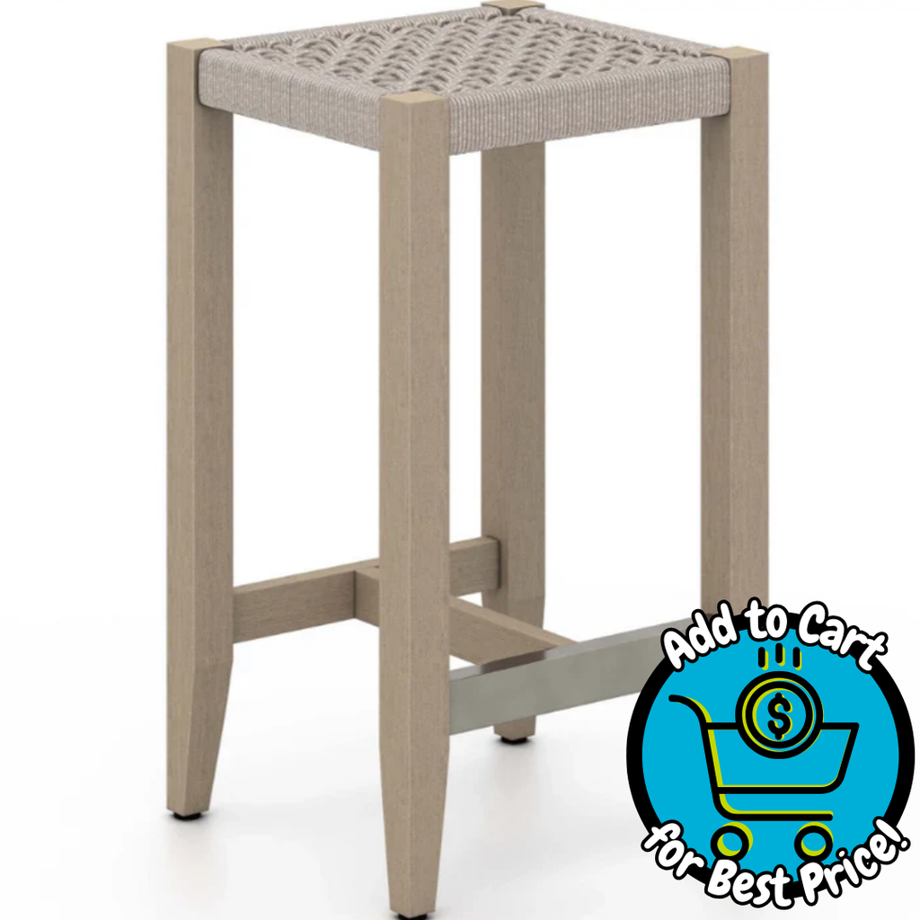 teak forms an airy, tapered frame for woven rope seating, bringing a textural touch to outdoor entertaining. Cover or store inside during inclement weather and when not in use.