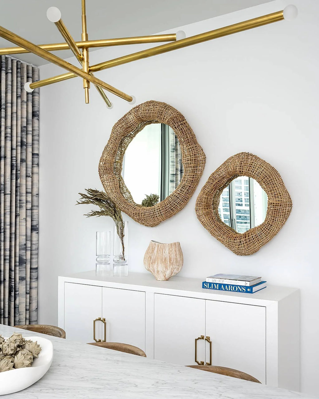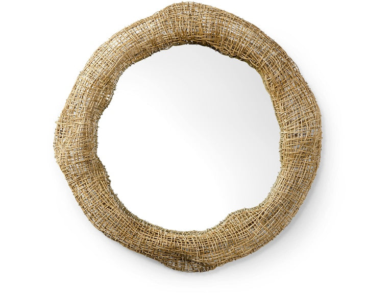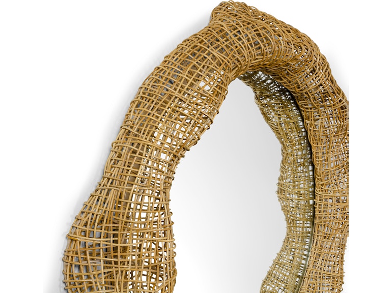 Mirror is framed in a hand-formed split rattan open weave in a natural finish hand-formed over a powder coated metal frame. Mirror includes metal cleat for mounting. Coordinates with the Andorra collection.