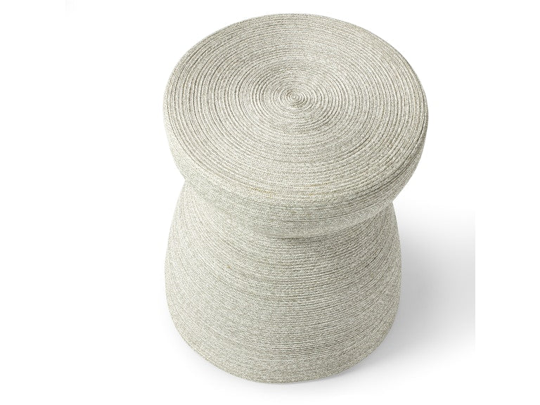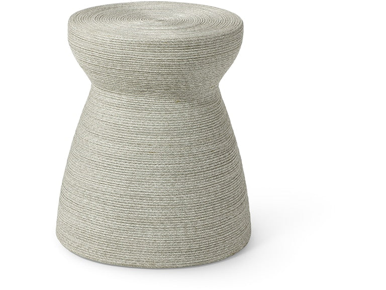 All-weather UV protected synthetic rope in a warm grey finish hand-wrapped around a fiberglass frame. Weave is resistant to fading, breaking and stretching. Suitable for outdoor use.