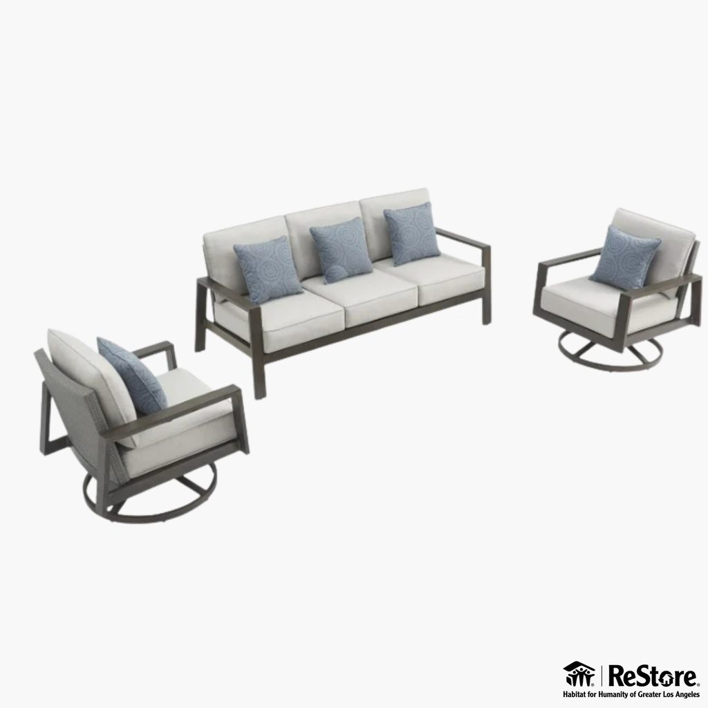 Experience the pinnacle of modern-day outdoor relaxation with our sturdy and stylish Thomasville Outdoor 3-piece Conversation Set, thoughtfully designed for your ultimate comfort and outdoor enjoyment. Designed with a rust-resistant aluminum frame, this set is built to withstand outdoor weather conditions, ensuring it retains its sleek and contemporary appearance for years to come.