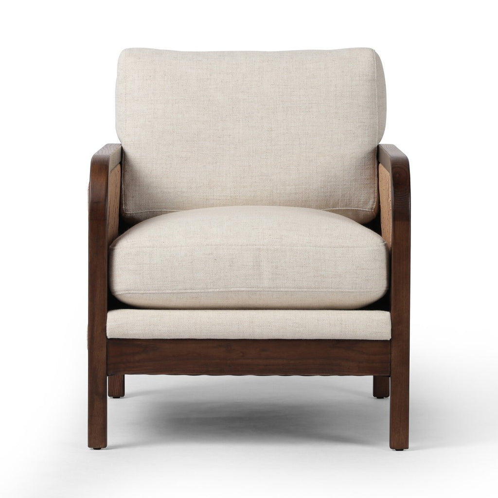Coastal and casual with a touch of vintage style. Upholstered in a modern-day performance fabric, this accent chair features woven rush paper panels within smooth nettlewood frames on the sides and back. Topped with loose feather blend seat and back cushions. Performance fabrics are specially created to withstand spills, stains, high traffic and wear, ensuring long-term comfort and unmatched durability.