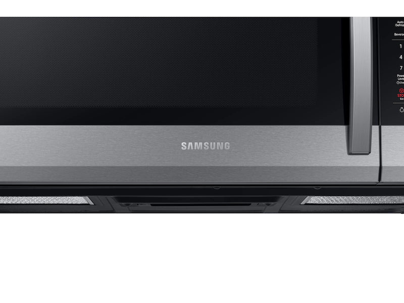 The Samsung over-the-range microwave makes preparing multiple dishes effortless with the large 1.9 cubic foot capacity, accommodating even your biggest dishes. Sensor cook technology automatically adjusts your cooking time for optimal results. Additionally, the fingerprint resistant finish helps reduce smudges and minimizes cleaning.