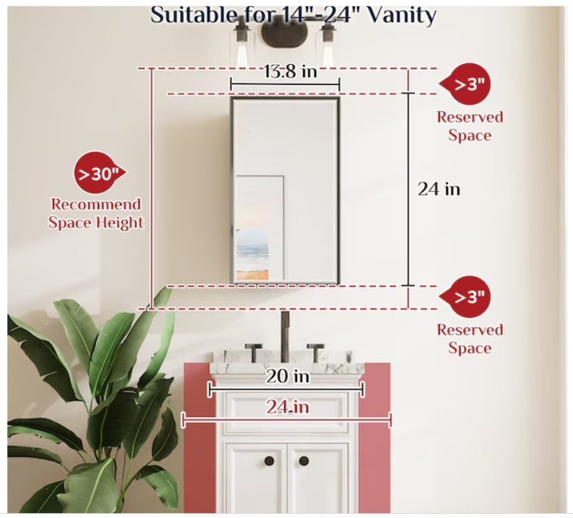 Keonjinn Metal Framed Medicine Cabinet with Mirror features a sleek yet sophisticated design - the elegant concave frame, the polished beveled edge and delicate floating effect – adding a touch of luxury, turning your bathroom into a refined and functional space.