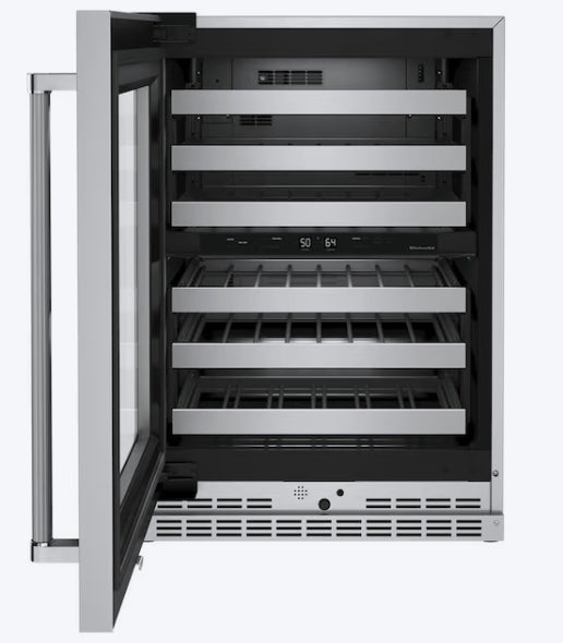This Under counter Wine Cellar with Full-Extension Metal-Front Racks holds up to 46 standard Bordeaux-size bottles. Two Temperature-Controlled Zones let you separate reds and whites to store each at the temperature you enjoy, and Motion-Activated LED Lighting turns on as you approach, making it easy to see what’s inside.