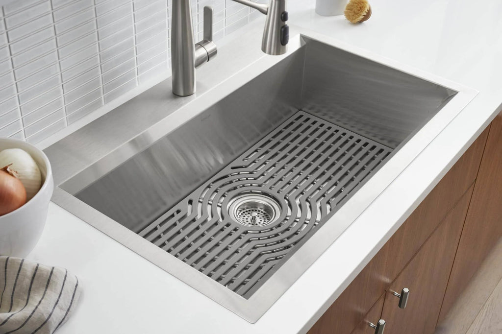 Work more efficiently with a kitchen workstation that caters to your individual needs. This 33" top singlebowl kitchen sink kit's KOHLER® Pro-Inspired dual-mount sink, made of premium 18-gauge stainless steel to resist rust and wear, offers the choice of top-mount or undermount installation in a 36" cabinet.