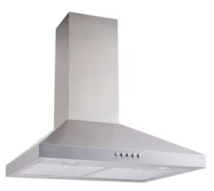 This 30 In. wall mounted range hood is constructed of premium 430 stainless steel. Complete with aluminum mesh filters that remove smoke and grease from your cooking area and are dishwasher safe. This model also comes with 2 bright energy saver LED lights, low noise level operation, 200 CFM air flow, push button, 3-level fan speed